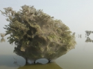 У результаті крони дерев, затягнуті густою павутиною, стали схожі на гігантські кокони.