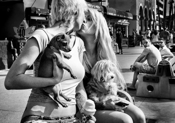 "Дві молоді татуйовані жінки, сиділи на лавці з морозивом і песиками на руках. Я чекав неподалік в передбаченні чогось цікавого. Згодом вони поцілувалися, і я встиг сфотографувати, перш ніж вони пішли геть. Вже вдома, розглядаючи кадр на комп'ютері, я побачив двох хлопців, які оглядалися на парочку. По-моєму, ця невелика деталь "робить" знімок", - говорить він.