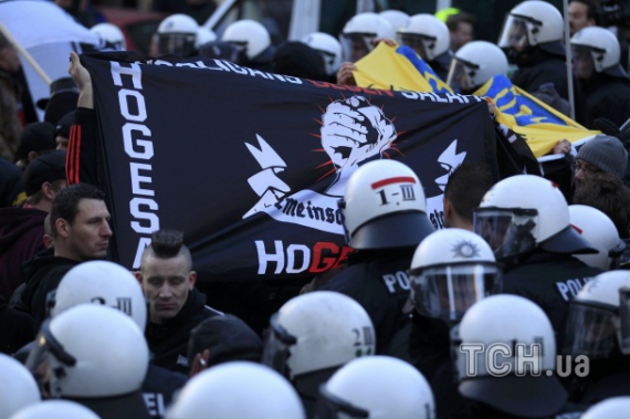 Станом на 17.11 за Києвом проти членів Pegida поліція застосувала водомети та перцевий газ.