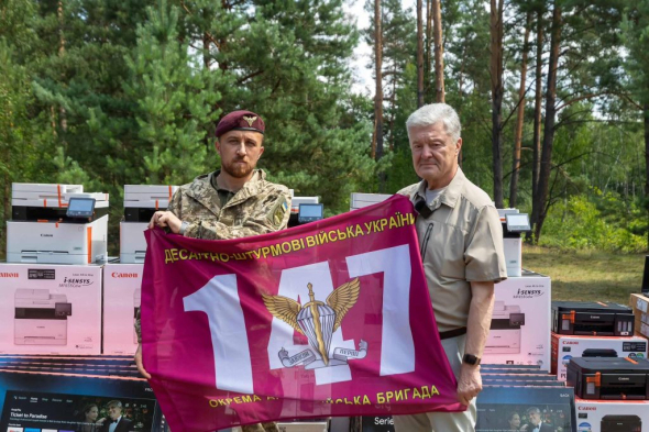 "147-ма окрема артилерійська бригада - також новостворена, хоча бачу тут усі знайомі обличчя. Хлопці попросили привезти комплекси "Старлінк", зарядні станції та комп'ютерну техніку. Усе за списком передали з рук у руки", - відзвітував Порошенко.