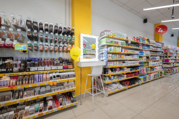 У мережі "Аврора" в магазинах пропонують покупцям спеціальні б'юті-зони з косметичними столиками. Тут покупці можуть спробувати доглядові креми, лосьйони, тональні засоби, помади тощо.