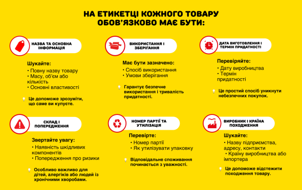 Перевірте склад та можливі застереження щодо вживання чи використання. Особливо коли купуєте продукти, що можуть викликати алергію, косметику чи побутову хімію.