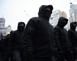 Деякі члени громадської організації "Національні дружини" приховують свої обличчя, тому що у них залишилися родини в окупованих Криму і Донецькій та Луганській областях.