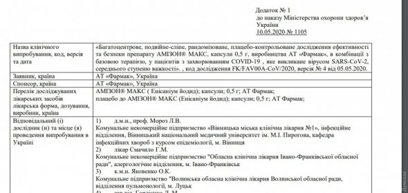 Препарат із недоведеною ефективністю "Амізон Макс" випробують на хворих з Covid-19