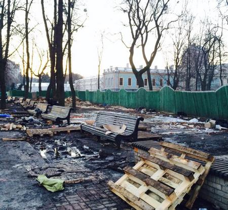 Також майданівці пішли наводити чистоту після своїх опонентів - більше ста активістів пішли до Маріїнського парку. Там напередодні завершилася акція антимайдану. До місця призначення проривалися через кордон міліції.