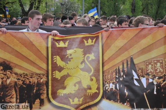 Близько 1000 молодих людей зібралося біля пам'ятника Степану Бандері, щоб відзначити 68-річницю створення дивізії СС "Галичина".
