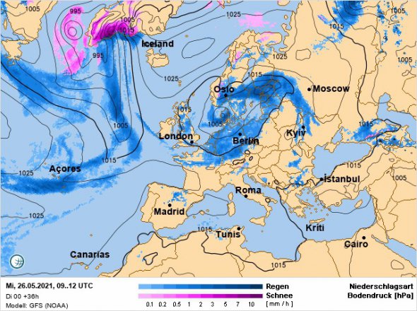 У середу Україну зачепить атмосферний фронт циклону, що розташувався поблизу Скандинавії.
