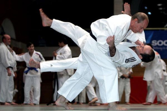 При відвідинах школи вищої спортивної майстерності в Санкт-Петербурзі прем"єр-міністр РФ Володимир Путін взяв участь в тренуванні збірної країни по дзюдо.