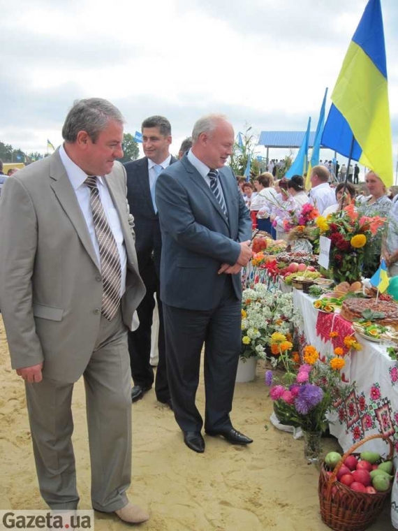 Перед відкриттям стадіону вони відвідали виставку, де були показані всі здобутки району. Разом з відкриттям проходило районне свято обжинків. Зокрема кожне село виставило свій "Стіл достатку" зі стравами та напоями. Селяни припрошували гостей з'їсти печених молочних поросят та смаженої риби.