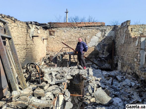 - Два рази туди попало, - продовжує жінка. - Перший раз мінами обстріляли, а потім вже, 25 березня, горів дах і повністю верхній поверх.