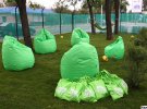 Широкій внутрішній двір містечка вражає оздобленням - зелений газон, деревʼяні альтанки з мангалами, мʼякі крісла мішки та навіть гамаки між дерев. Трохи далі - дитячий майданчик із гірками та гойдалками. На великій сцені із дощок поставили тенісний стіл. Землю перед вагонами присипана сірим гравієм. Під парканом стоять велосипеди, якими можуть користуватися мешканці.