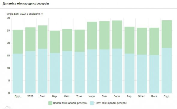 За грудень 2020 року українські резерви зросли на $2 996,89 млн - на 11,5%.