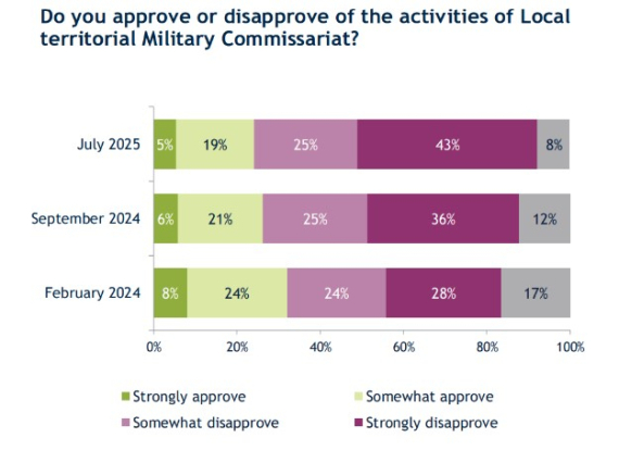 У липні 2025 року довіряють ТЦК чверть опитаних (24%), не довіряють 68%.
