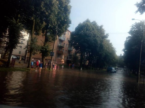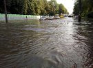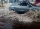 Також сильний потоп був на вулиці Княгині Ольги. У деяких місцях вода сягала коліна і пішоходи переходили дороги вбрід.