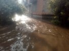По вулиці Степана Бандери вода підійшла до під'їздів будинків і залила цілі двори.