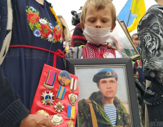 Після завершення акції під посольством РФ родичі загиблих пішли до будівлі Офісу президента, де вимагали покарання винних у загибелі українських військових і добровольців.