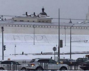 У російському місті Казань невідомі витоптали на снігу слово "воры" поблизу місцевого Кремля.