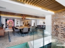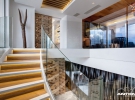 Створена за оригінальним проектом гвинтові сходи служить сполучною ланкою між двома рівнями квартири, а спеціальні дерев'яні пластини, якими оббиті стіни і стеля, покликані створити атмосферу стриманої вишуканості. Поруч з басейном розташовуються бар і спа-тераса з видом на Атлантичний океан.