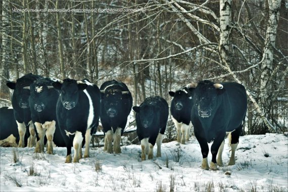 Стадо здичавілих корів у Чорнобильській зоні виявили біля села Луб'янка 20 січня. Світлини тварин викликали надзвичайну цікавість. Фахівці відзначили, що стан усіх корів добрий. Сніжну і морозну погоду вони переживають успішно.