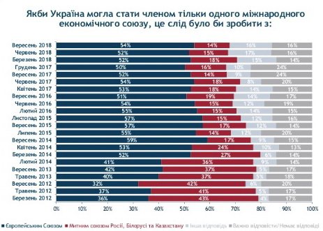 14% опитаних є прихильниками вступу до Митного союзу з Росією, Білоруссю та Казахстаном.