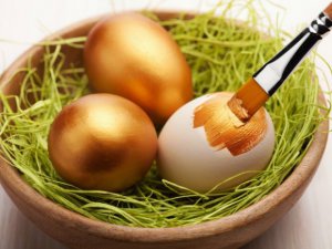 Є багато барвників, за допомогою яких можна зробити яйця на Великдень красивими та оригінальними. Дуже святково виглядає золотий колір.