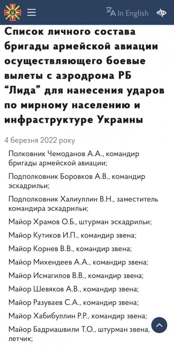 Усі наведені імена – це люди, які входять до особового складу бригади армійської авіації, що здійснює бойові вильоти з білоруського аеродрому "Ліда".