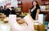 У великій залі на першому поверсі встановили чи не найпопулярніший експонат солодкої колекції - сало в шоколаді. Біля нього зупинялися найчастіше: фотографувалися нібито намагаються вкусити або просто зацікавлено роздивлялися. За дві години перебування кореспондента Gazeta.ua на святі ніхто так і не зазіхнув скуштувати делікатес.