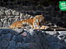 Тварини здаються розслабленими і щасливими. Так тигр мирно дрімає на сонечку, жираф безтурботно гріється, а ведмідь милується теплим промінням у басейні. Фото опублікували на сторінці Київського зоопарку в Facebook.