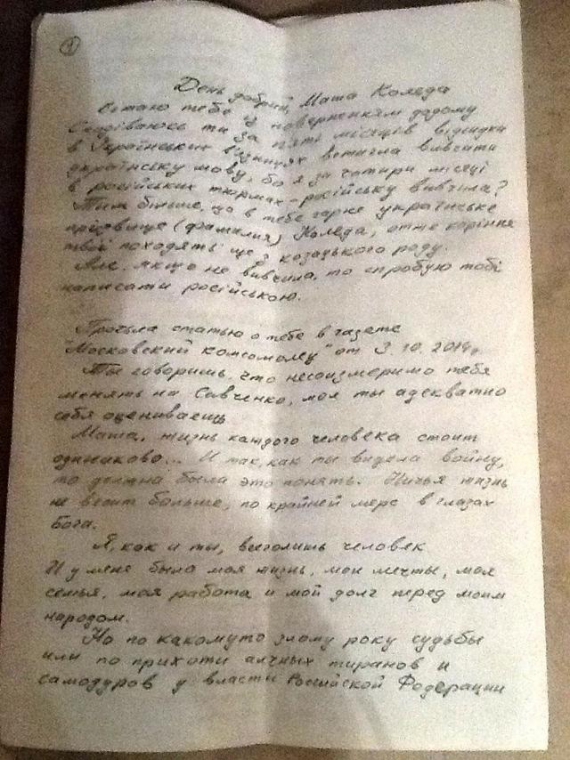 "У дампі поштової скриньки російської терористки Марії Коледи, який викладений у відкритий доступ волонтерами Центру Миротворець на сайті ordilo.org, є лист, написаний Надією Савченко. Документ знаходиться в листі від 8.01.2015, адресованому Станіславу Ретинському, працівникові т.зв. Міністерства інформації терористичної організації "ДНР", - написала Яресько.