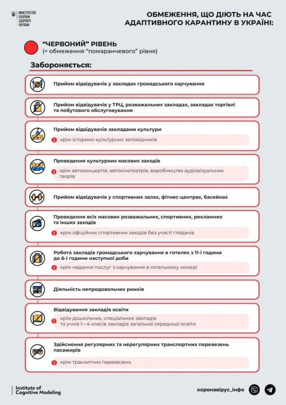 - відвідування навчальних закладів, крім дошкільних установ і молодших класів.