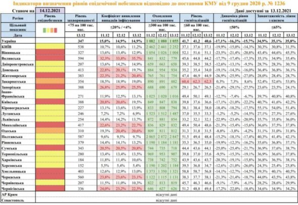 14 грудня до жовтої зони карантину перейшла Донецька область. Тепер там перебувають Київ і ще 12 областей.