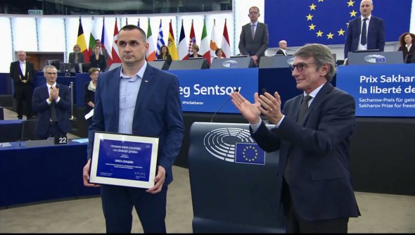 Спочатку Сенцов виступив із промовою перед євродепутатами. Потім президент Європарламенту Давід Сассолі передав йому нагороду.