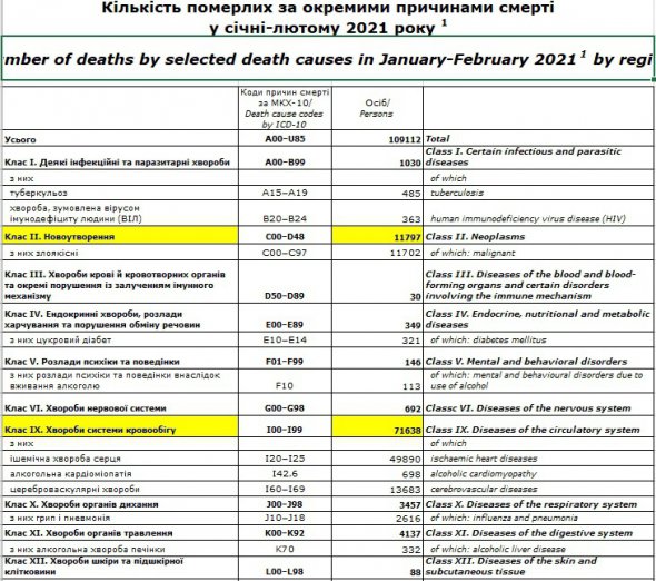 Covid-19 як причина в статистиці смертей українців у січні-лютому 2021 року посів третє місце.