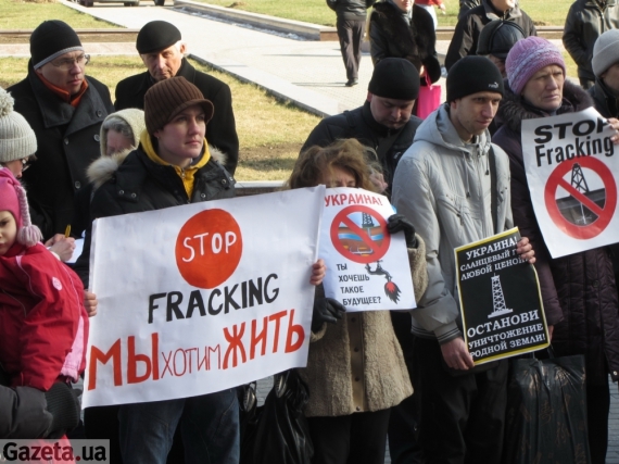 Активісти батьківського форуму "Кроха", який займається організацією допомоги онкохворим дітям, 28 лютого провели в Донецьку акцію протесту проти видобутку сланцевого газу.