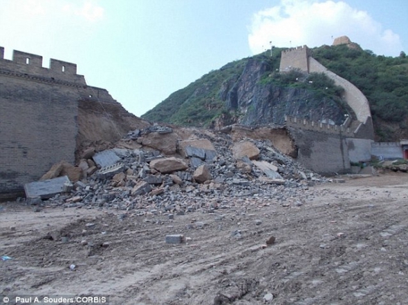 Частина Великої китайської стіни в провінції Хебей на півночі Китаю впала після кількох днів безперервного дощу. Про це повідомляє агентство "Синьхуа" з посиланням на місцеву владу.