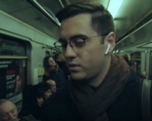 На ньому ведучий телеканалу слухає і співає в метро пісню репера.