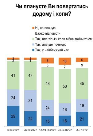 "У порівнянні з липнем зросла кількість тих, хто планує повертатися негайно, і зменшилася кількість тих, хто повернеться після війни або ж не повернеться", ‒ ідеться в повідомленні.