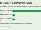 Перемогою вважатимуть повернення Україні територій, які Росія захопила з 2014 року. Про це свідчать дані опитування, яке провели соціологи американської компанії Gallup з 2 до 11 вересня серед 1 тис. респондентів.