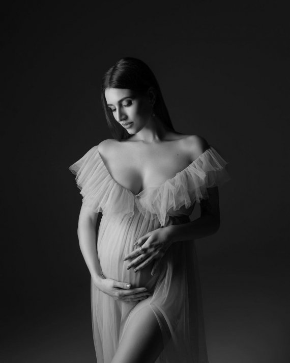 Вона постала на фото в повітряній сукні, що підкреслює її живіт. У публікації в Instagram вона зізналася, що її друга вагітність дуже нервова та емоційна.