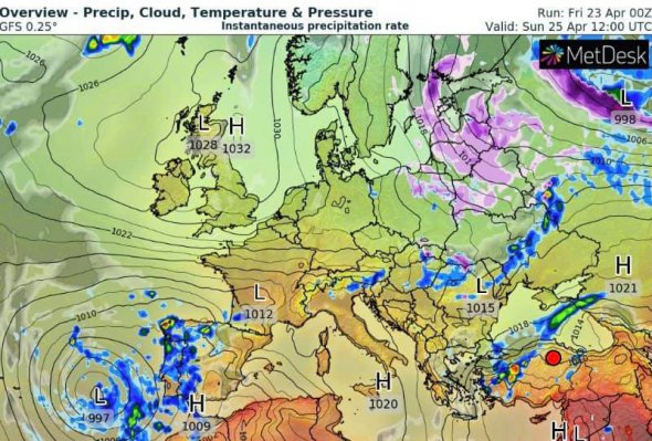До кінця квітня погода в Україні лишатиметься холодною. До кінця місяця українців чекають температурні гойдалки. Дощі, місцями з грозами, йтимуть майже щодня. 29-30 квітня температура трохи підвищиться.