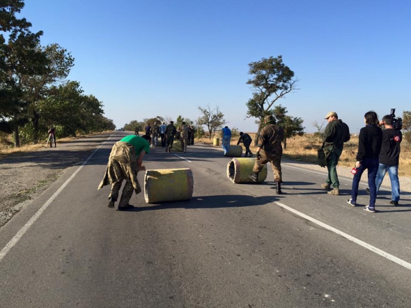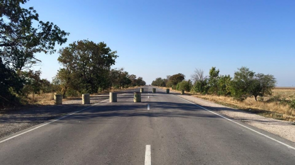 Журналістка Валерія Івашкіна на своїй сторінці у Фейсбук повідомила, що одній із доріг до Криму ПС в шаховому порядку встановлює бетонні урни.