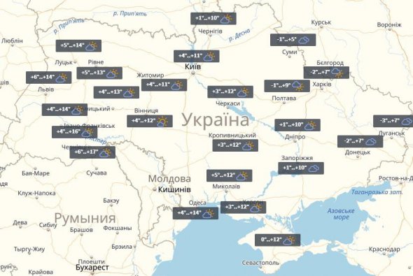 На півночі до +6°С, на півдні та сході до +13°С. На заході стовпчик термометра підніметься до +9°С, у центрі - до +10°С.