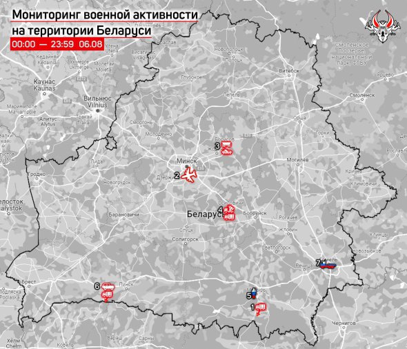 "О 7:30 на трасі Р31, Мозир – перетин трас Р31 і Р37, рухався "Урал" Збройних сил Білорусі. О 9:00 на аеродромі "Мачулищі" зафіксували зліт Іл-76 повітряних сил Білорусі, сів він о 12:30. Біля одного з магазинів Fix Price у Мозирі о 14:00 бачили двох осіб у російській військовій формі", – ідеться в повідомленні.