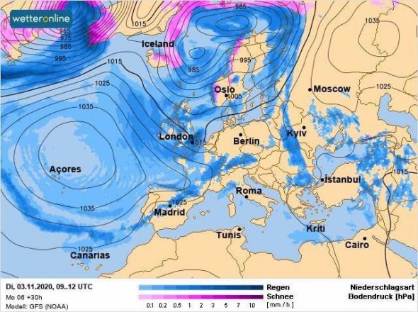 Вівторок принесе дощі в західну частину країни. Опади прогнозують також на сході, південному сході та подекуди у центрі. На решті території - сухо, але можливі тумани.