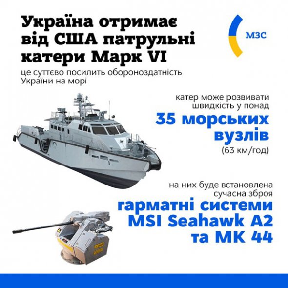 Влада Сполучених Штатів Америки схвалила продаж Україні 16 патрульних катерів Марк VІ та необхідного супутнього обладнання до них на суму в $600 млн.