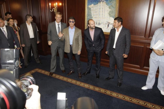 "Я радий, що актори погодилися прилетіти в Україну, - сказав кореспонденту Gazeta.ua нафтовий бізнесмен Олександр Онищенко, який оплатив приїзд акторів у Київ. – Ми переманили Сталлоне, Лундгрена і Стетхема у Лондона, Парижа і Москви. В інших столицях прем"єру "Нестримних" показують без головних персонажів стрічки".