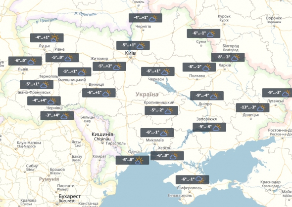 У Дніпрі без опадів. Температура повітря -4°. Вітер мінливий, легкий.