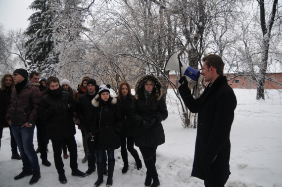 Сьогодні під стінами Львівської облдержадміністрації пройшов протест студентів національного університету ветеринарної медицини ім. С. З. Гжицького. Близько двох десятків молодих людей протестували проти приєднання їх навчального закладу до аграрного університету, який знаходиться в Дублянах.