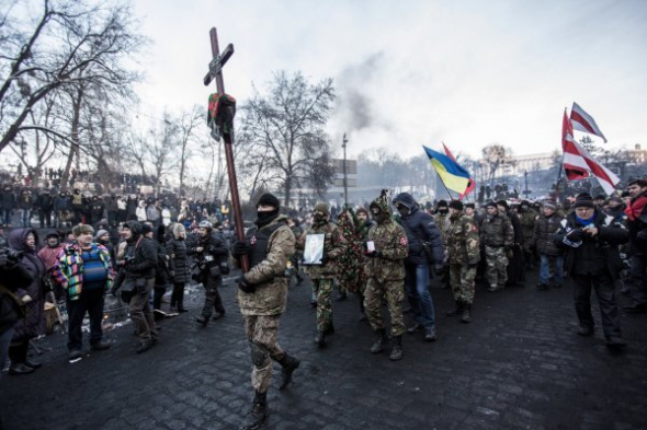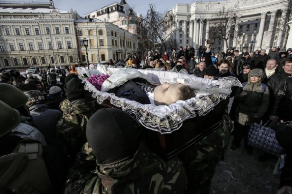 Традиційне віче на Майдані скасували. Тут сьогодні прощаються із загиблим 22 січня на Грушевського активістом Михайлом Жизневським.