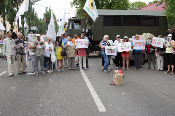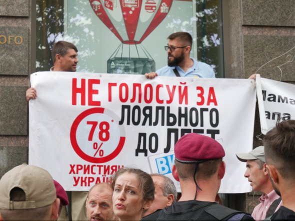 - Друзья, мы сторонники Вадима Рабиновича, народного депутата, нашего ЛГБТ-диктатора по его приказу пришли сегодня поддержать прайд в Киеве, - говорить у гучномовець чоловік в оточенні жінок старшого віку. Вони тримають плакати: "Що за життя без ЛГБТ?" "Рабинович, введи ЛГБТ режим" та інші. Їх поліція на територію проведення маршу не пропускає.